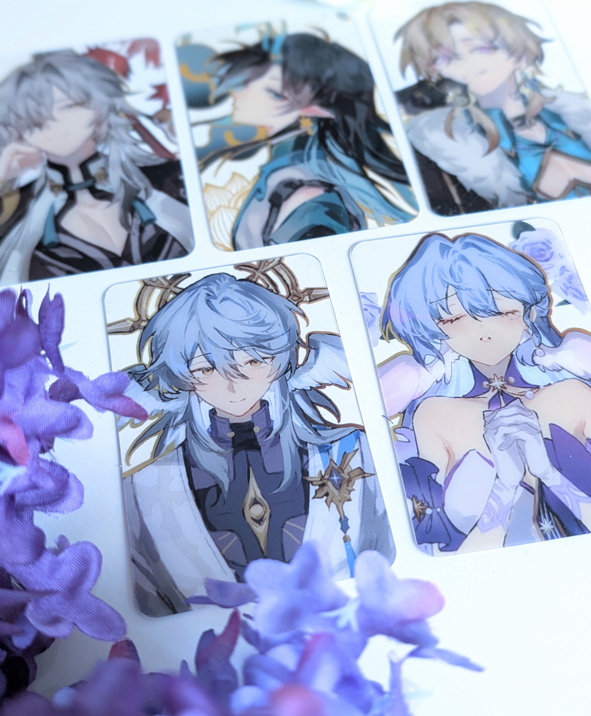 5.6 x 8.5 cm photo card sized mini prints of Star Rail characters on transparent PVC material!