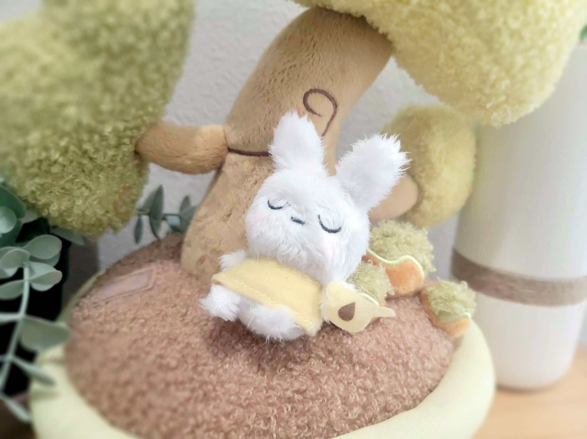 This bonsai plushie tree will never need water. Taken care of lovingly by its little bunny gardener, this jumbo plushie can be left alone but still bring joy to your mood. You can also detach the bunny plushie and have a little pocket friend with you. This jumbo plushie is made to be soft and plush but still able to stand upright on its own! Based off our Bonsai Tree Pin series!