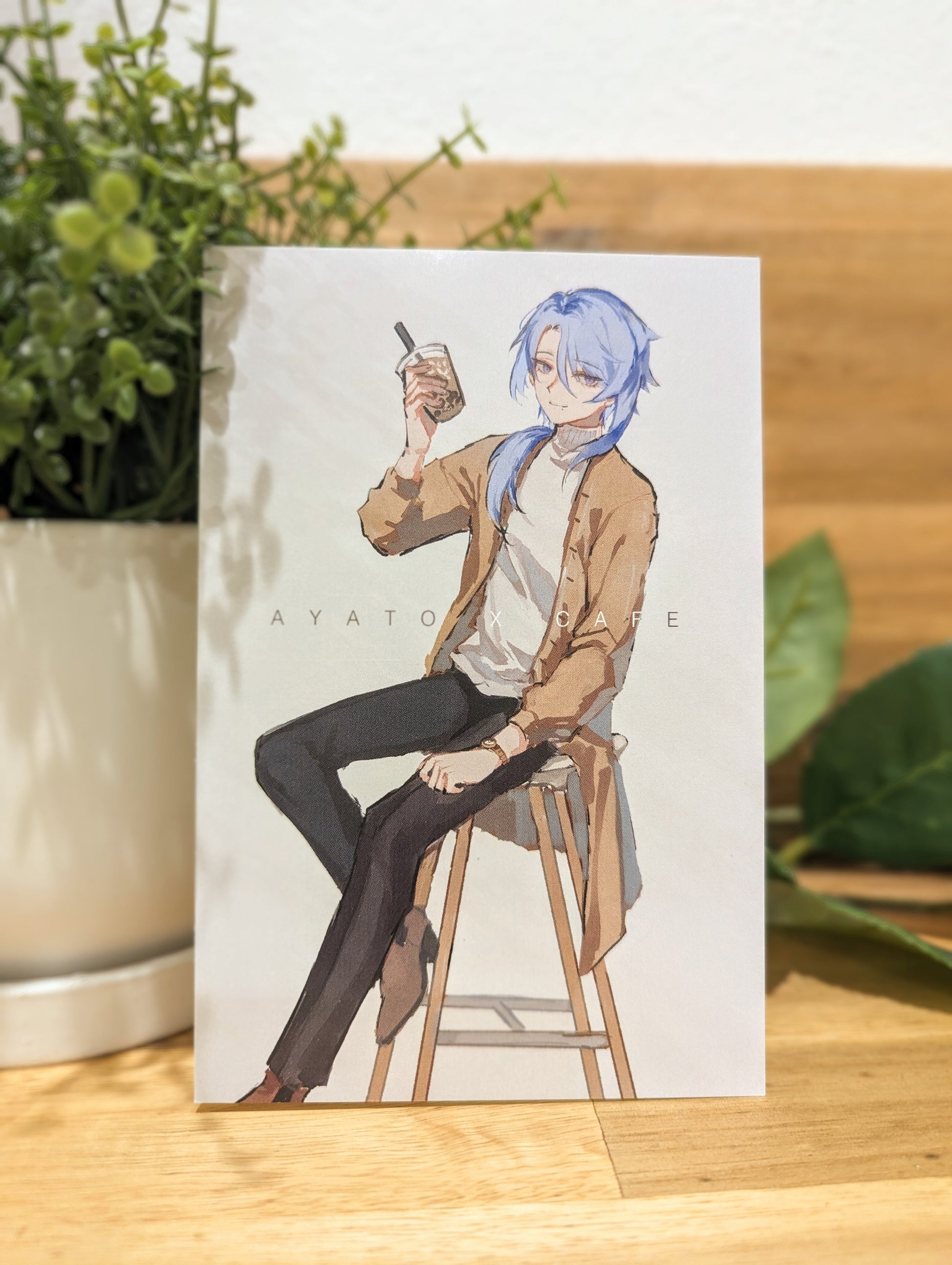 4x6" postcard sized print of Ayato from Genshin Impact in an AU outfit.