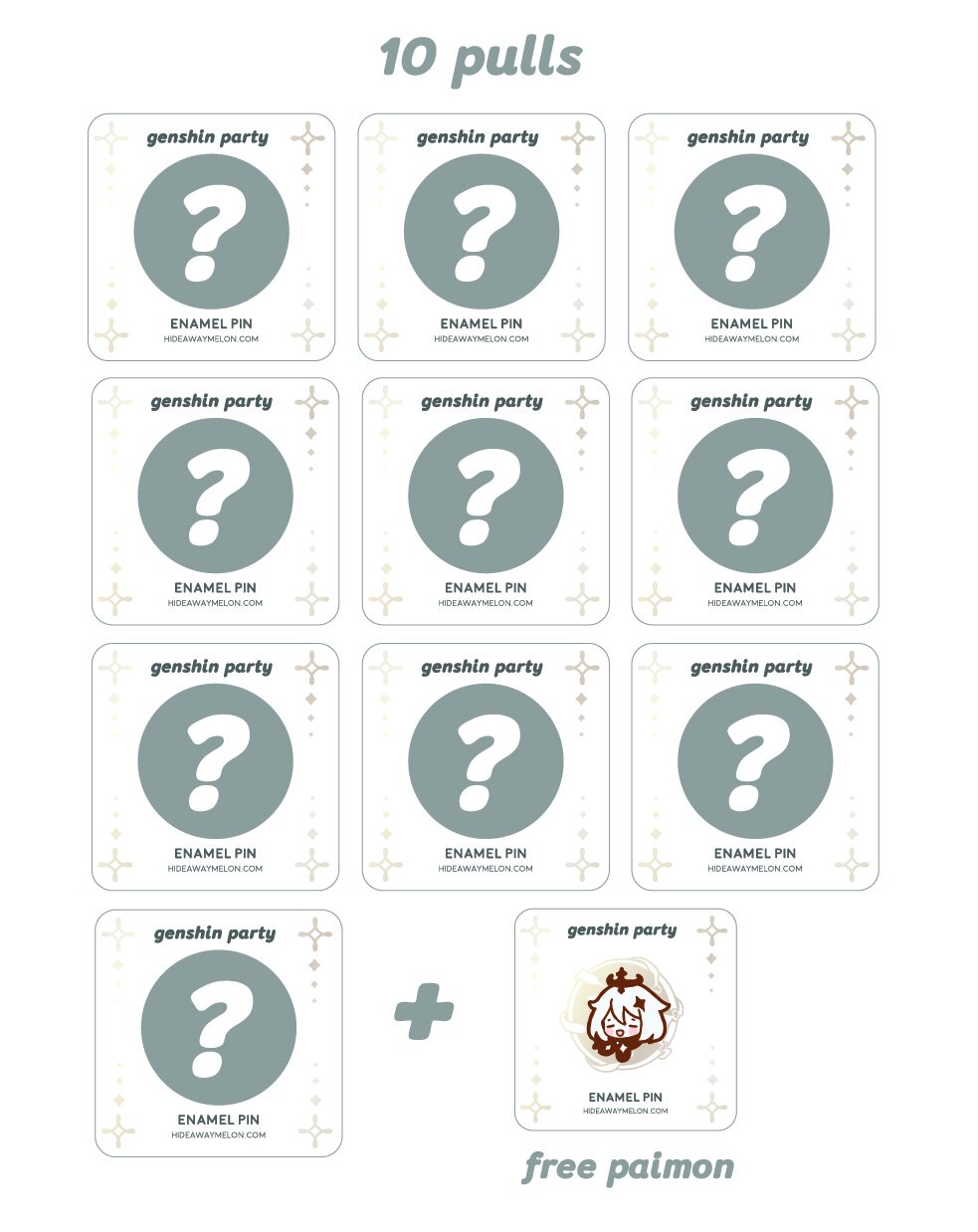 A free extra small 0.5†Paimon pin will be included for every 10 rolls.