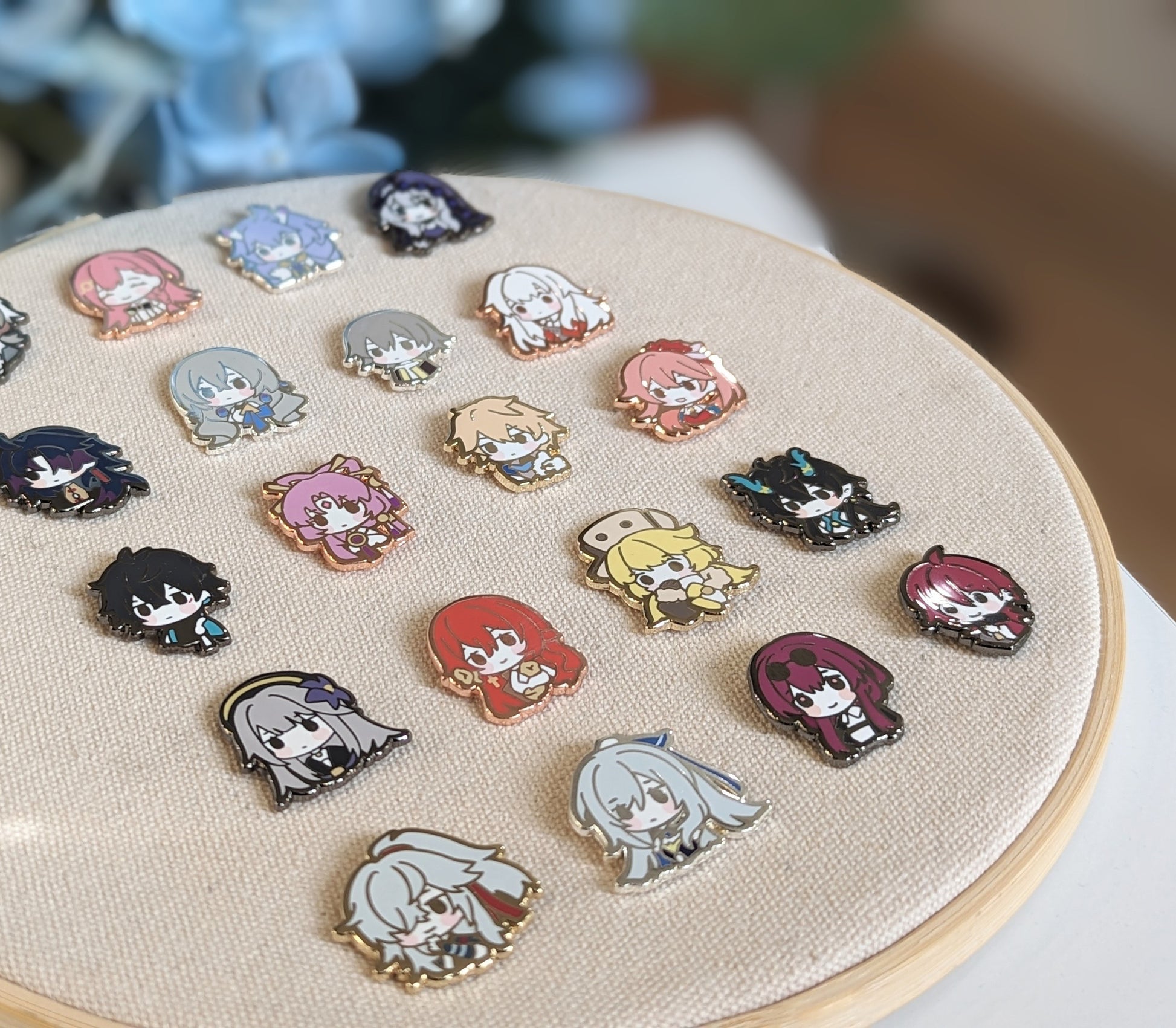 This listing is for a gacha/random hard enamel pin for one of 20 Honkai Star Rail characters from the app game. They are super small and cute 0.75" pins.