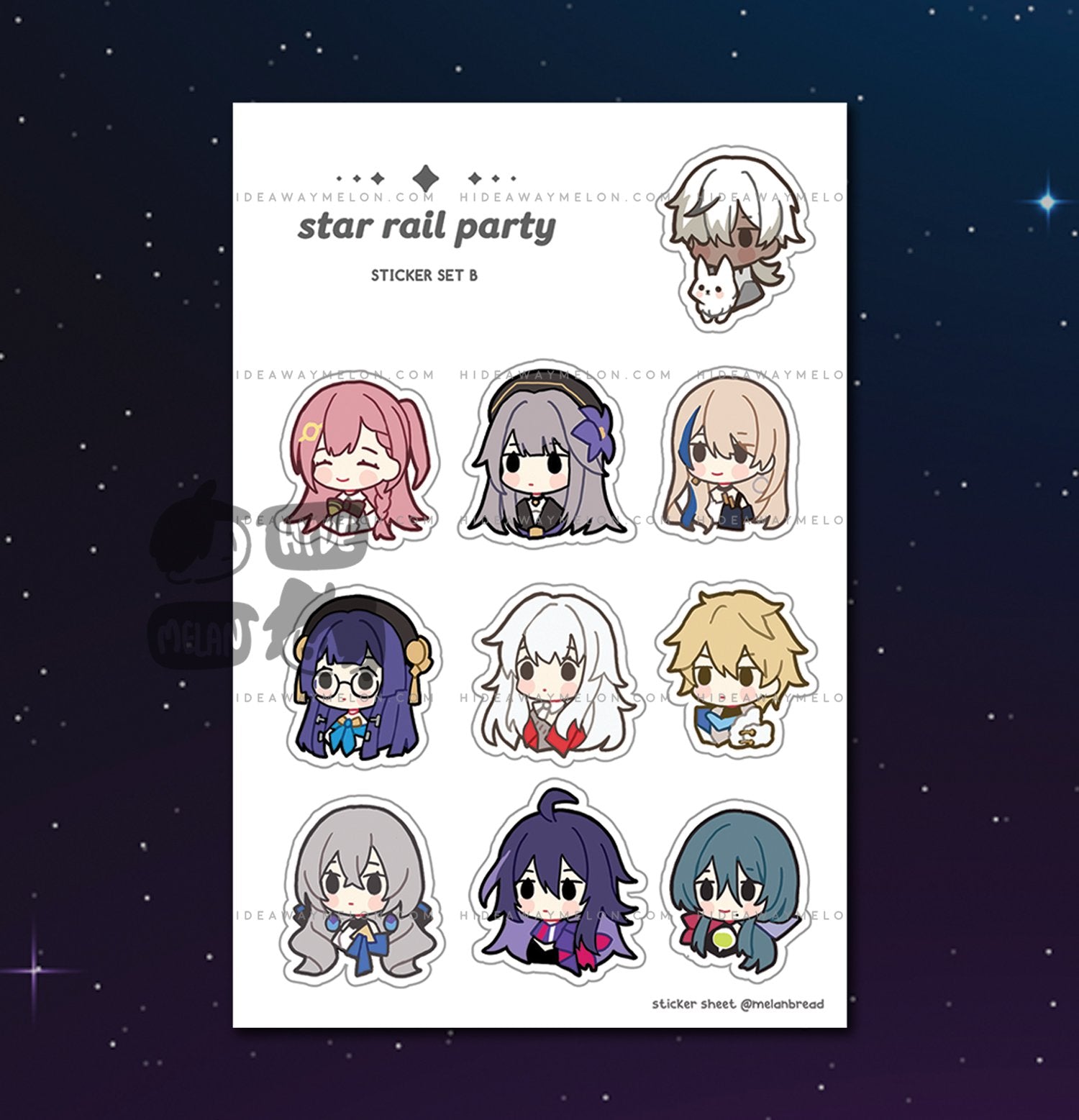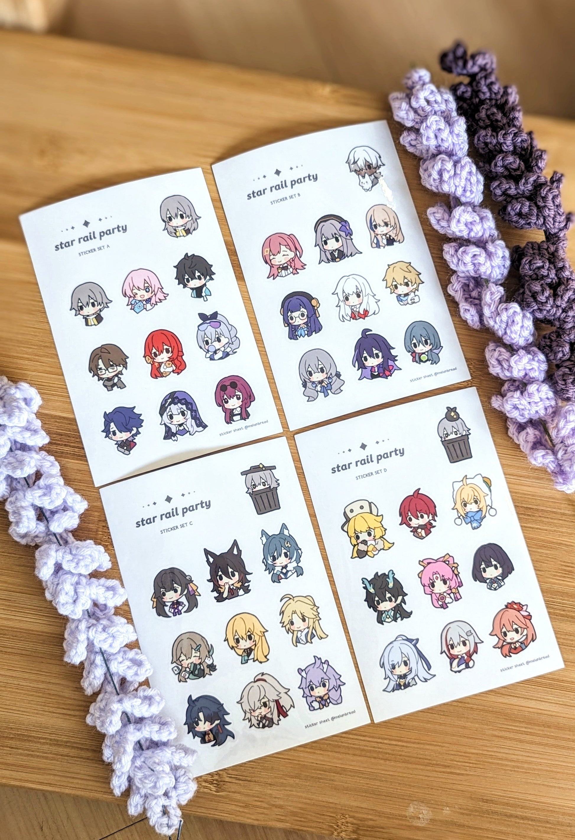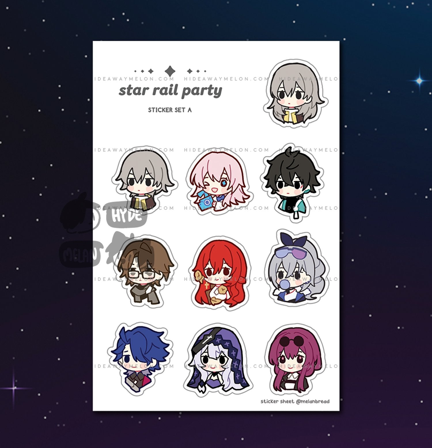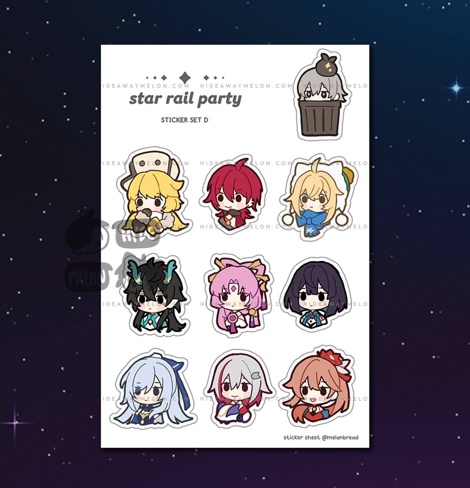 This listing is for a 4" x 6" kiss cut sticker sheet of characters from the popular game, Honkai Star Rail! Each sticker individually peels off with adhesive backing and is printed on transparent vinyl.