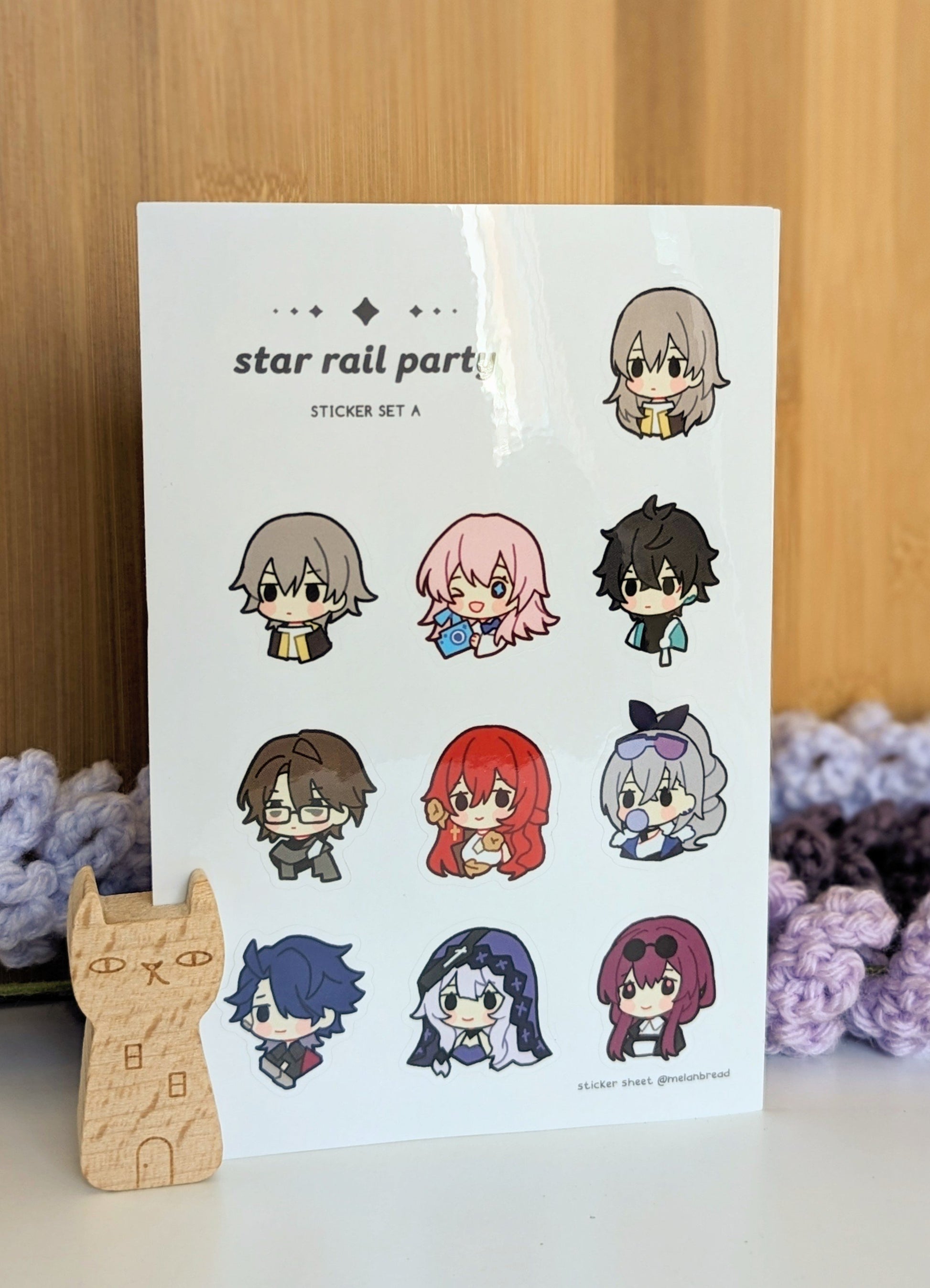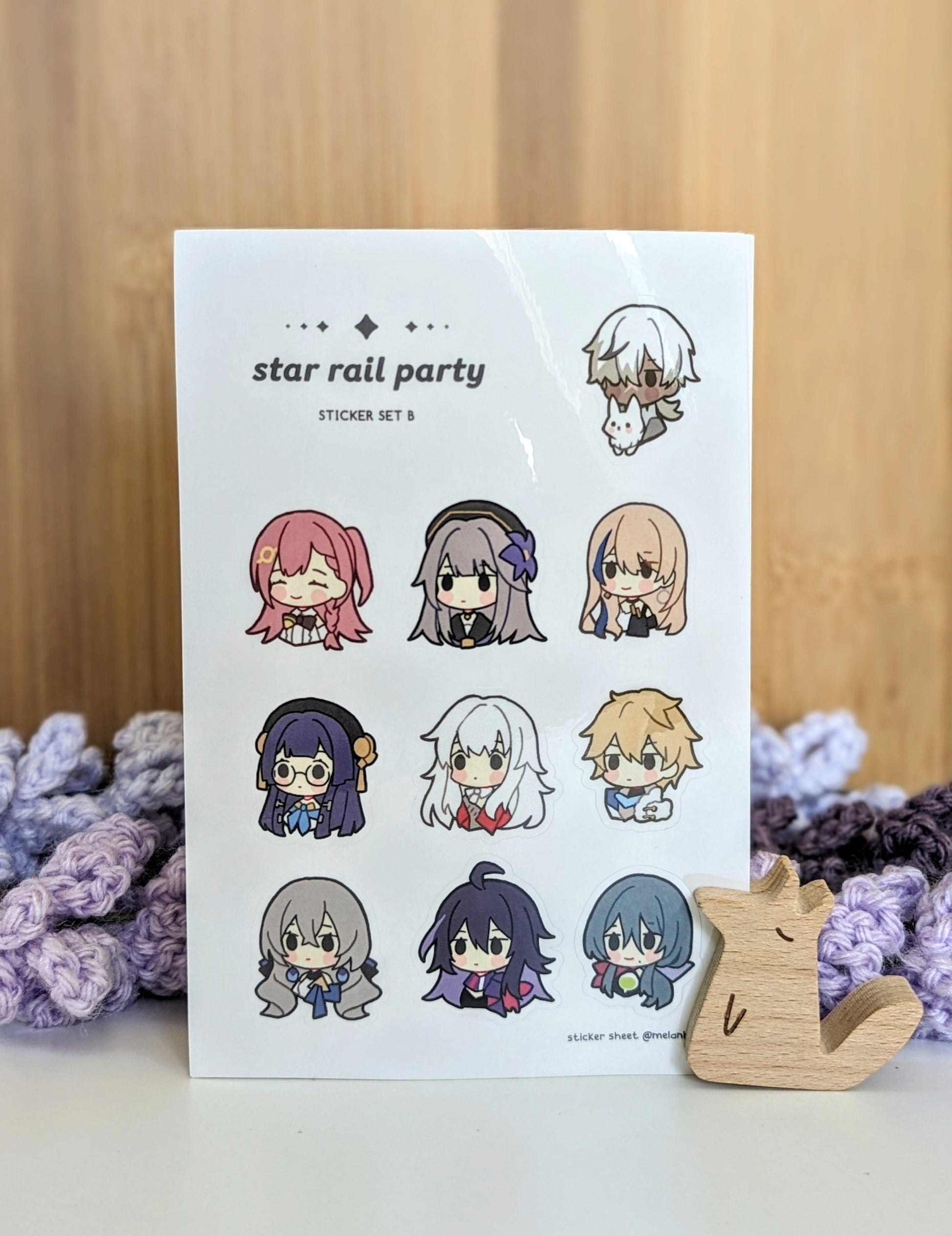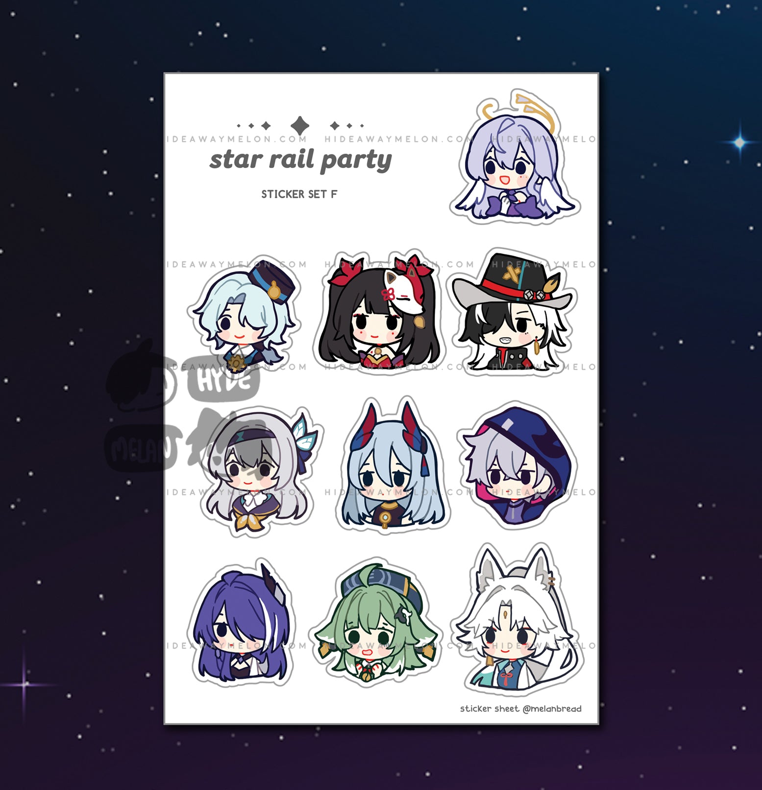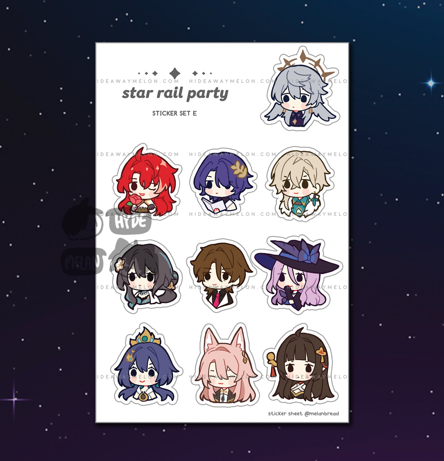 This listing is for a 4" x 6" kiss cut sticker sheet of characters from the popular game, Honkai Star Rail! Each sticker individually peels off with adhesive backing and is printed on transparent vinyl.