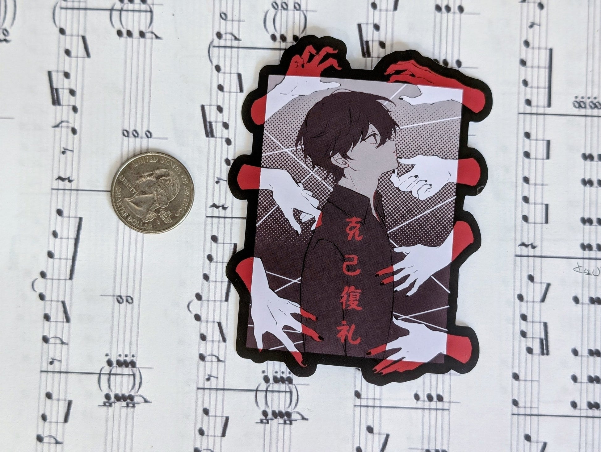 This listing is for an individual 4" die cut sticker of our original “Kokki Fukurei†design! Each sticker individually peels off with adhesive backing, printed on white vinyl.