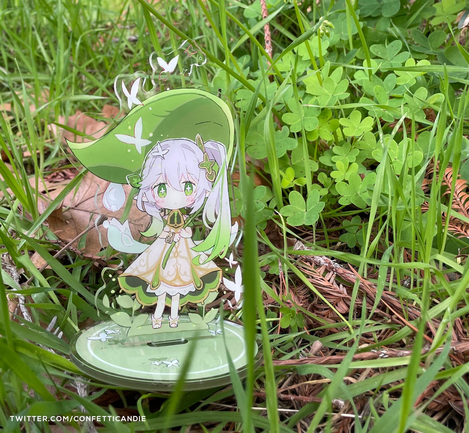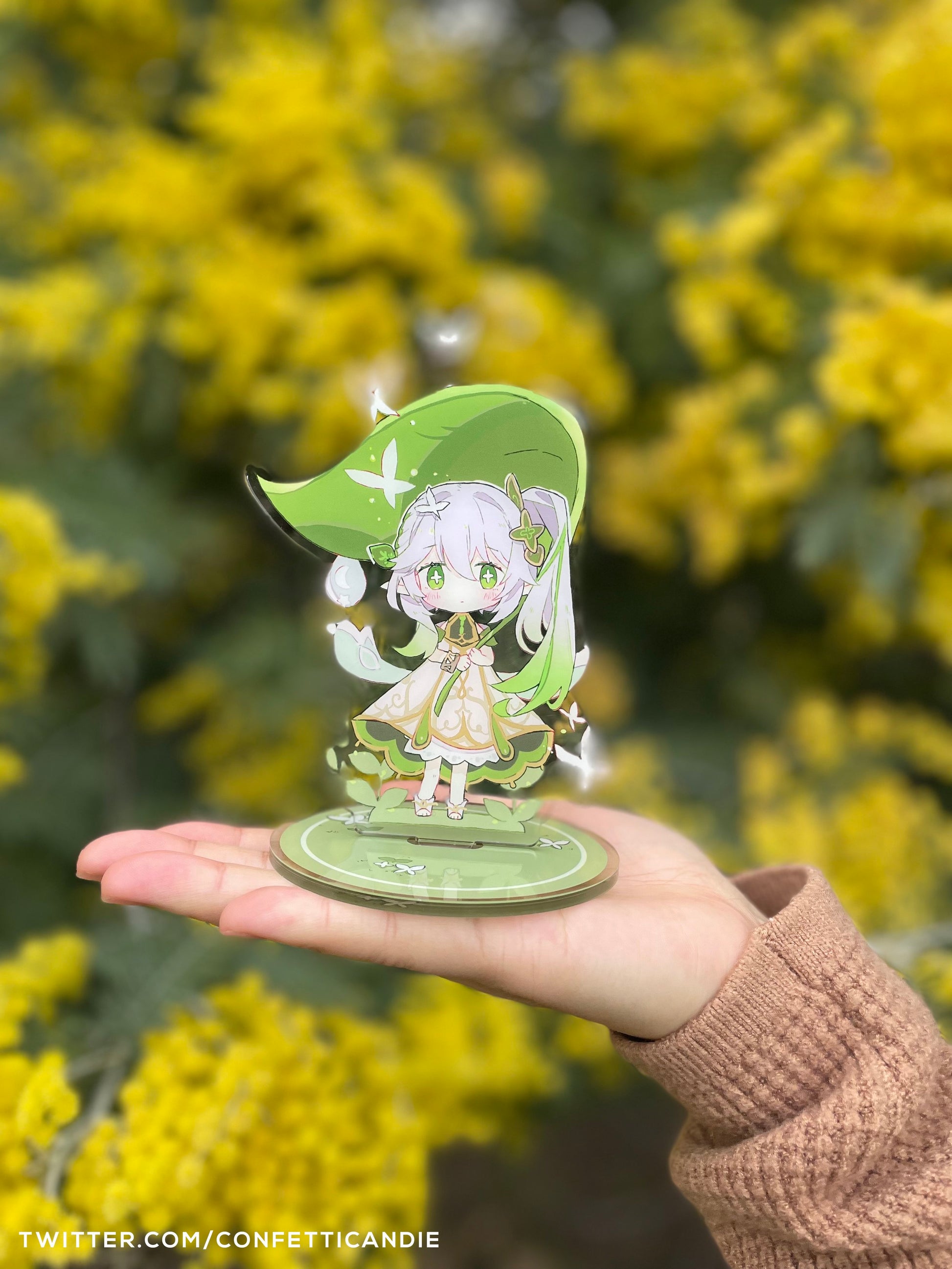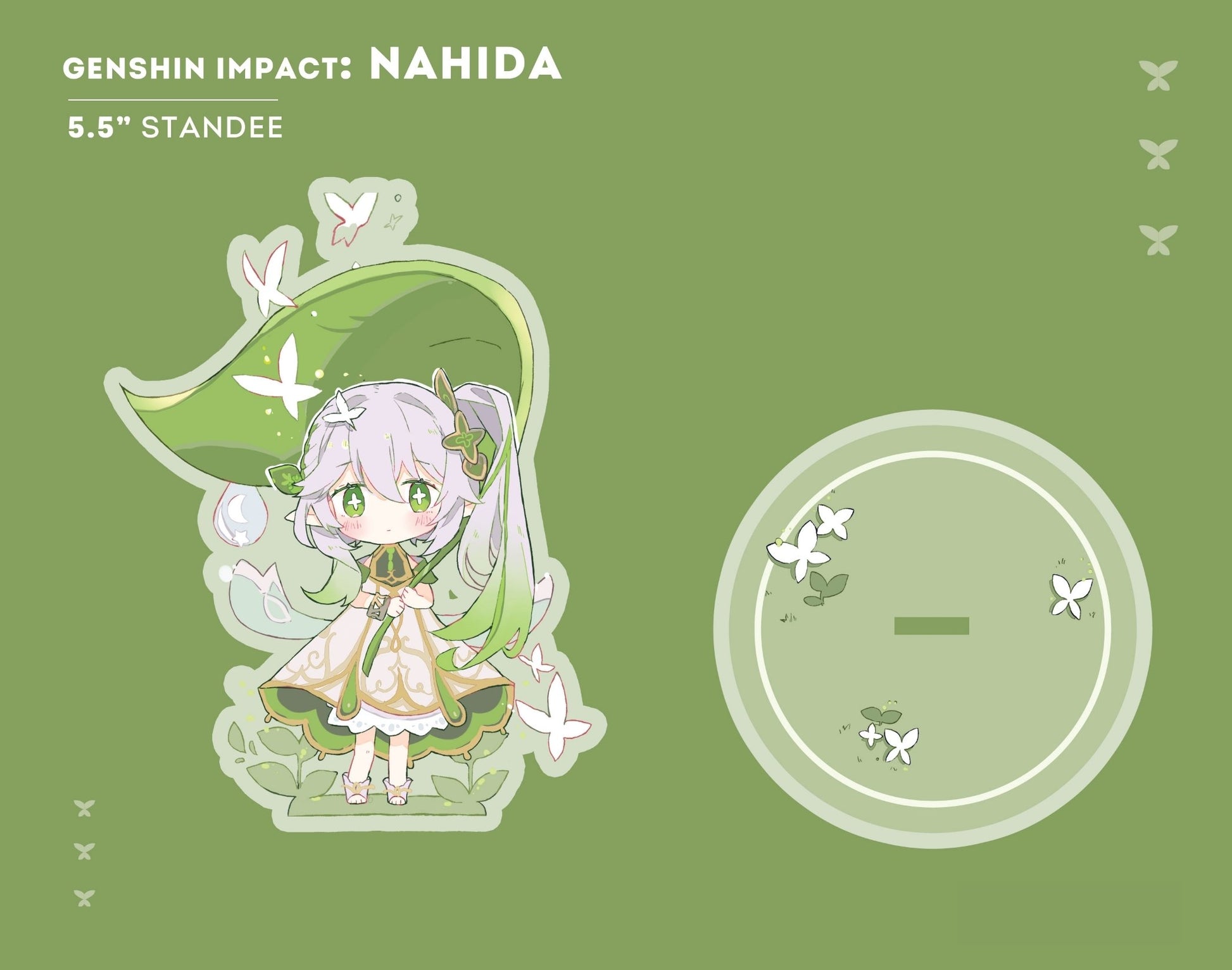 This listing is for a 2-piece acrylic standee of Nahida from Genshin Impact! It is professionally printed directly on durable CLEAR acrylic. Set includes 1 base and 2 standing pieces.