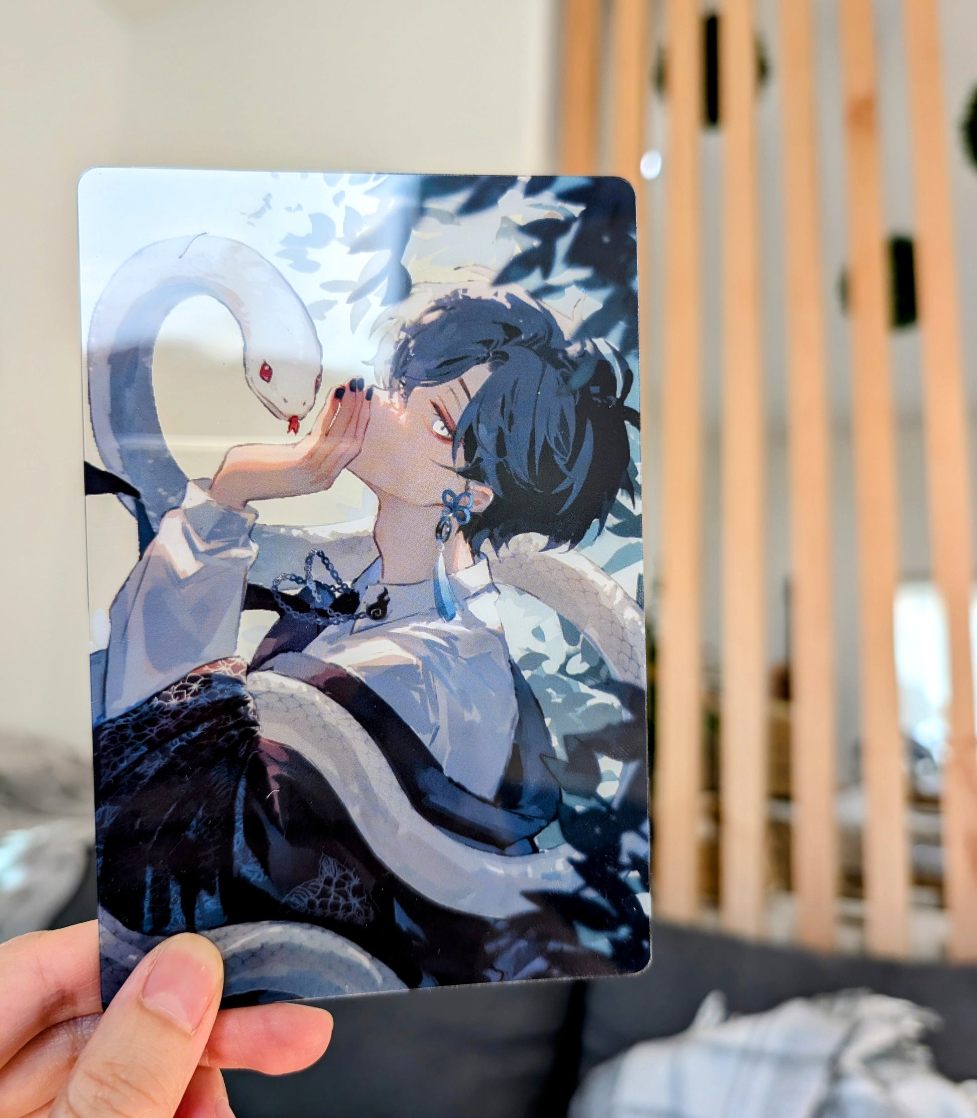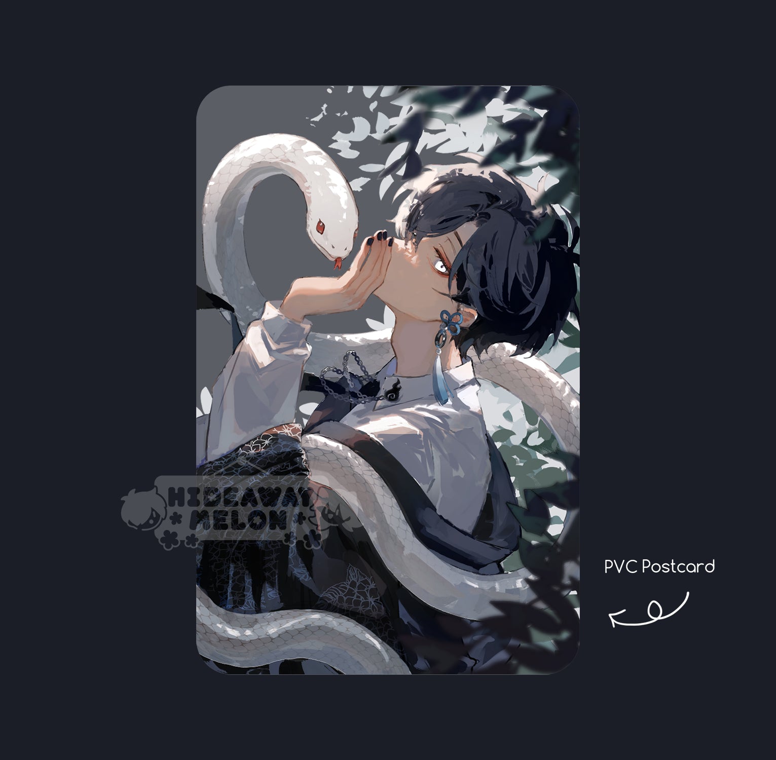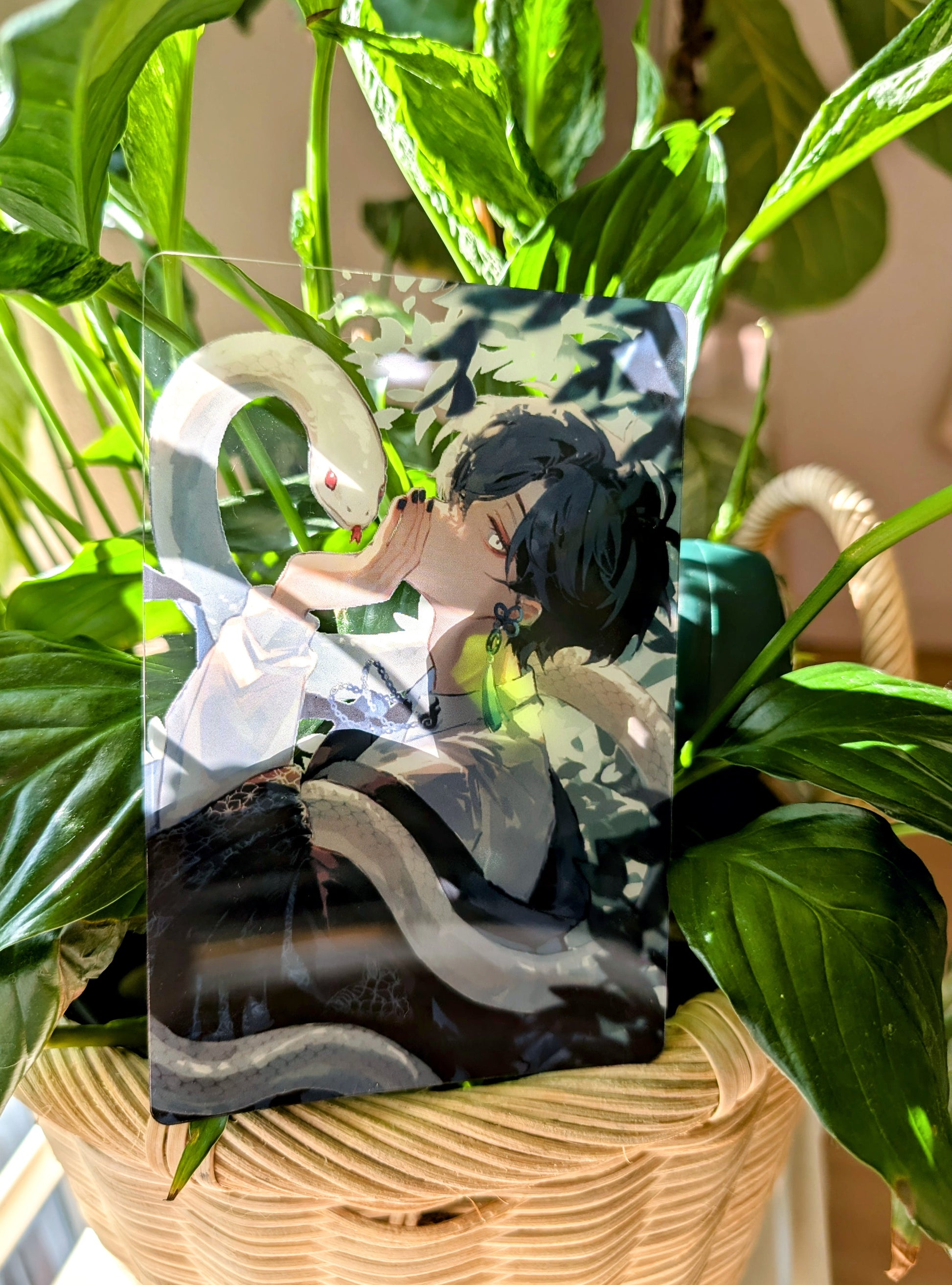 Postcard sized print of an original design printed on transparent PVC plastic.