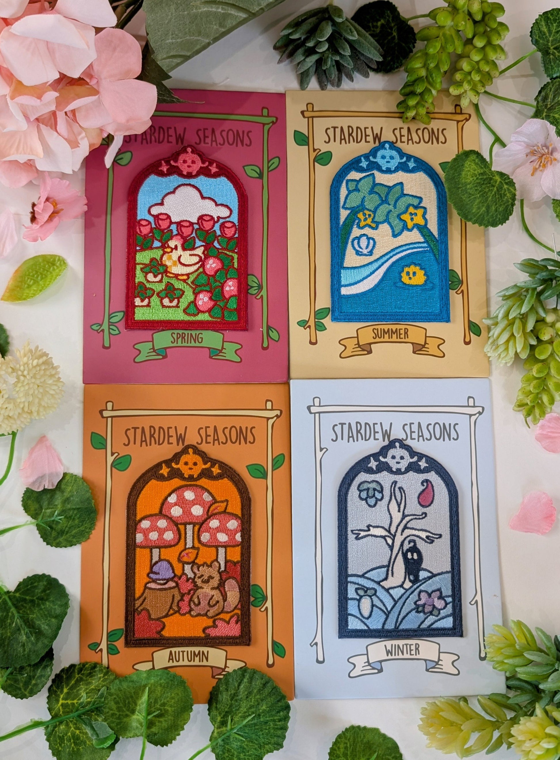 Celebrate the changing seasons of Stardew Valley with these beautifully embroidered patches, featuring iconic flora, crops, and cozy details from spring to winter. Perfect for jackets, bags, or display, they bring a touch of pixelated charm to real life!